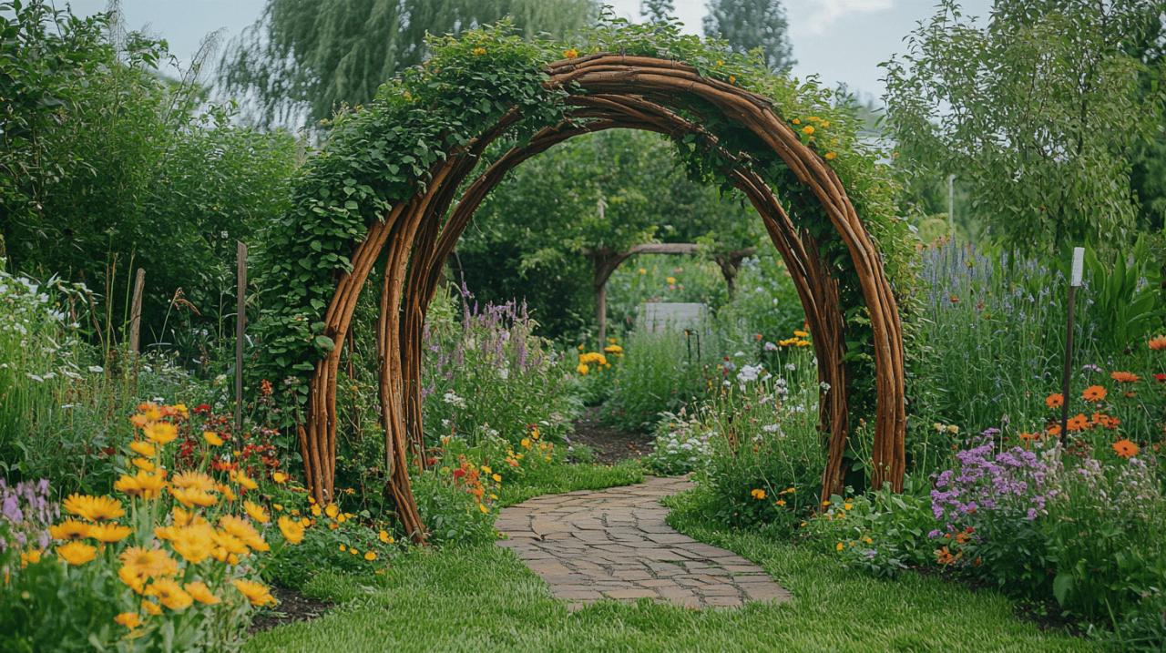 Les treillages constituent la structure essentielle de l'arche. Ils s'assemblent aux piliers principaux pour former un support stable. Les fils de fer se positionnent horizontalement et verticalement afin de créer un maillage régulier. Cette disposition permet aux plantes de s'accrocher naturellement lors de leur croissance. Un espacement de 15 à 20 centimètres entre chaque fil assure une répartition harmonieuse des végétaux.